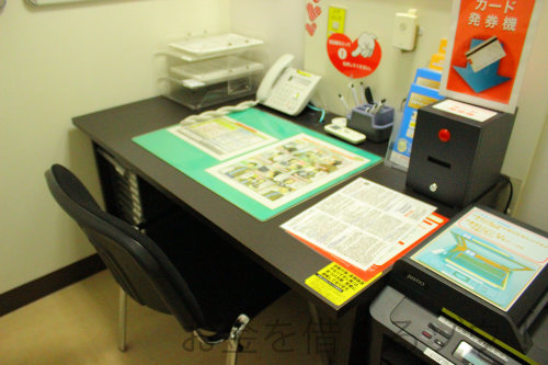 机の下の引き出しには各種書類が用意されており、その中にアイフル申込用紙があります。